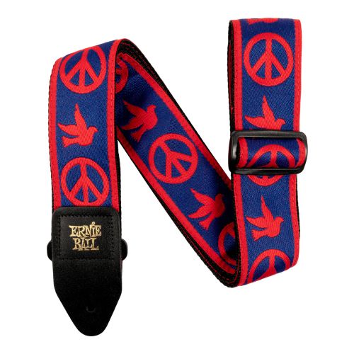 Ernie Ball 4698 CLASSIC JACQUARD GUITAR STRAP/BASS STRAP - RED & BLUE PEACE LOVE DOVE