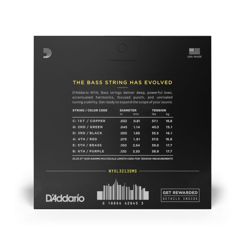 NYXL bass guitar strings thump harder, bend farther and sound thicker than any bass string you’ve played before. As our premium uncoated bass string, NYXL bass strings provide higher break strength, enhanced tuning stability, and accentuated harmonics where it counts. Using a NY Steel core, Fusion Twist technology, and premium nickel-plated steel wrap wire, with a reengineered core-to-wrap ratio, NYXL bass guitar strings deliver extra versatility, familiar feel, and a boosted tone that’ll expand the scope of your low-end. Made for 6-string fanned fret basses, this 32-130 Regular Light Multiscale set provides players with an extremely versatile, multiscale string, in our most popular string gauge.