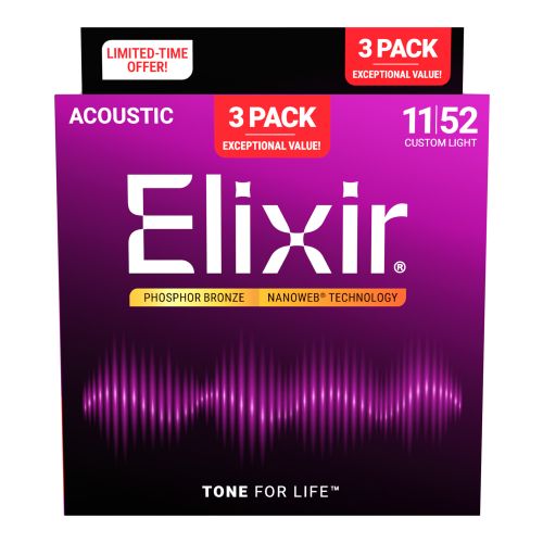 Elixir 16027 3 pack phosphor bronze Elixir® Strings Acoustic Phosphor Bronze with NANOWEB® Coating deliver distinctive phosphor bronze warmth and sparkle together with extended tone life.