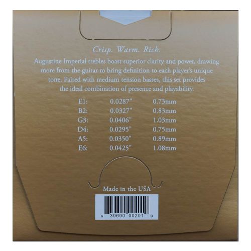 Imperial trebles - a medium tension string made of Augustine's "new and unique" polymer, with Red Basses - medium tension