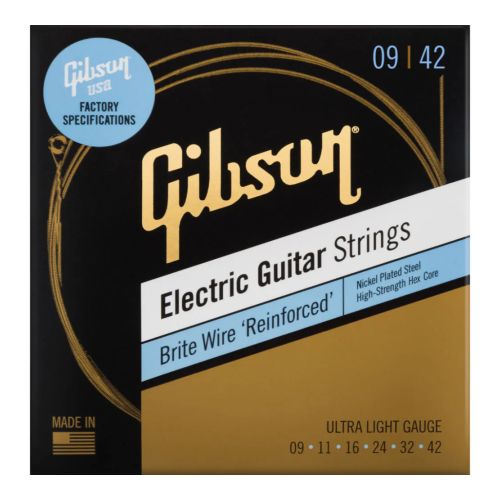 Developed and approved by our Master Luthiers, Gibson Brite Wires are the factory specification strings used at the Gibson USA facility. These strings feature a high-carbon steel, hex-shaped core precision-wound with nickel-plated steel, providing unmatched durability and powerful tone. Discover the superior sustain and bright, crisp attack that is suitable for nearly any playing style. High-carbon steel core for superior durability. Nickel-plated steel wound for powerful tone and sustain. Developed and approved by Gibson Master Luthiers