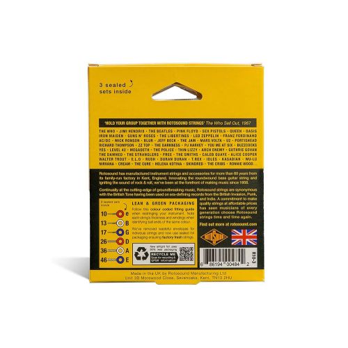 Multipack of Rotosound’s best-selling electric guitar strings. The combination of silky nickel wrap and powerful steel core makes our Rotos a great all-rounder for any playing style or genre