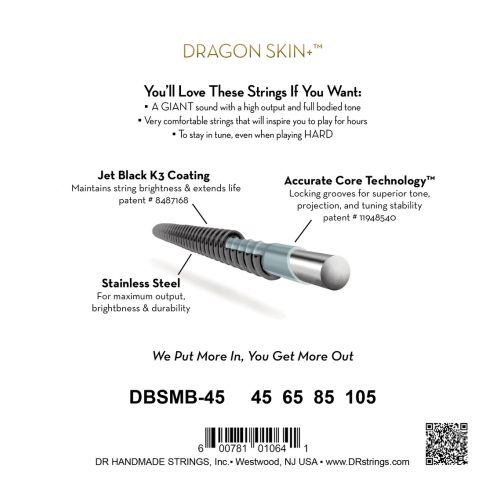 BLACK DRAGON™ bass strings combine the superior sound, effortless playability and extra long life of the Dragon Skin+ with the vibe of the Black Beauties.