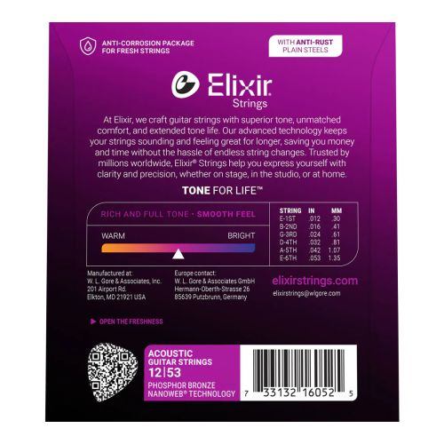 Elixir® Strings Acoustic Phosphor Bronze with NANOWEB® Coating deliver distinctive phosphor bronze warmth and sparkle together with extended tone life.