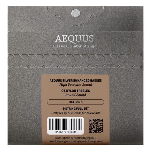 Aequus Silver Enhanced basses project each note with stability, maintaining precise harmonic balance across bass, midrange, and treble. Their character is especially evident in the mid register, where the guitar resonates with greater richness and control. QZ Nylon trebles provide a smooth attack and controlled clarity, balancing the set without adding excessive brilliance and offering a uniform tonal color that complements the basses. A high-performance string, meticulously designed to deliver precision and control across the entire range. For musicians seeking balance, control, and a present sound with enhanced detail and definition.